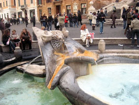スペイン広場の噴水。周りは、観光客でいっぱいです。