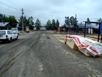 『川俣正』、 http://www5a.biglobe.ne.jp/~onthetab/ 6月21日、現地帯広入りし、 ついに制作開始! |
