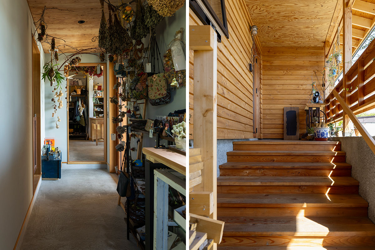 若い頃から「何かモノづくりをライフワークにしたい」と考え続けていた奥さんは、戸建て暮らしを始めてから庭で育てた草花を生かしたドライフラワー製品の販売を手がけるようになっていました。「もっと広く、環境のいい土地で、思う存分モノづくりに没頭できる住まいを建てたい」。その想いも、住み替えの後押しになりました。2021年、雑木林に隣接した約300坪の土地を購入したご夫妻は、旧居の外装リフォームを依頼した武部建設とともに、新居のプランづくりを始めました。
